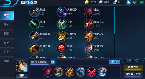 六神装:急速战靴、影刃、宗师之力/制裁之刃、无尽战刃、泣血之刃、魔女斗篷/破军