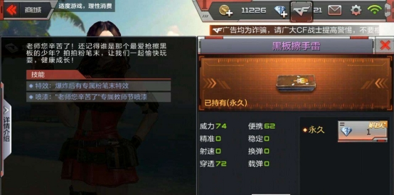 CF手游黑板擦手雷是游戏最新的道具,这款道具造型非常的独特,相信有很多的用户都非常喜欢,那么,游戏中CF手游黑板擦手雷怎么样呢,杀伤力是否够大,下面西西就为大家分享CF手游黑板擦手雷属性评测,希望大家能够喜欢。