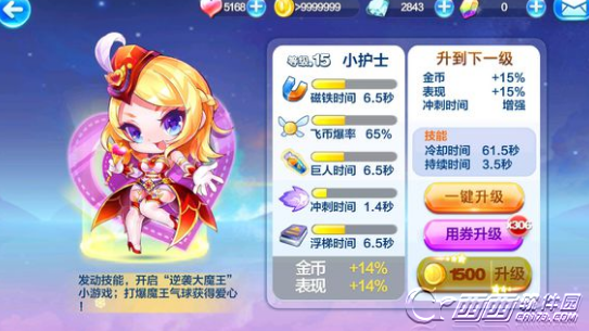 这是一款超级奖励得分类型的人物,小伙伴们通过使用小护士,触发技能的时候可以进入小护士击打大魔王的页面中,从中可以获得各种高分气球以及特殊金币,特别是加入了三个小护士的专属宝物的话,得分实力非常强悍,这款人物适合搭配超级奖励得分类型的装备,具体的使用方法其实有点类似盛装小帅哟。