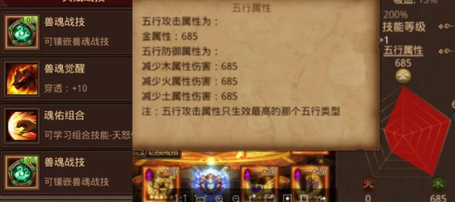 Ø 玩家最好佩戴相同属性的(同名),比如带5个白虎战技,这样可以叠加出一个超高的五行属性(五行属性攻击附加伤害只取最高值),看到这里的时候,有心的小伙伴已经拉开了仇敌列表,把目标放在了准备碾压的主要仇敌们,查出他们的主属性,然后选择一个能克他们属性的兽魂战技,堆叠起来复仇吧!