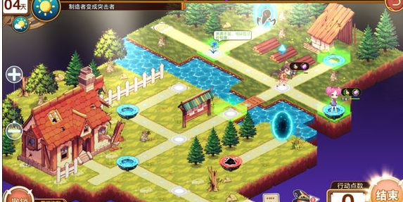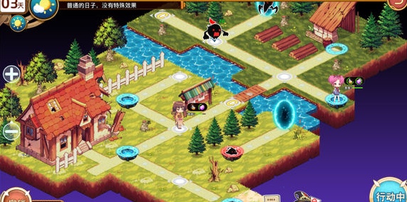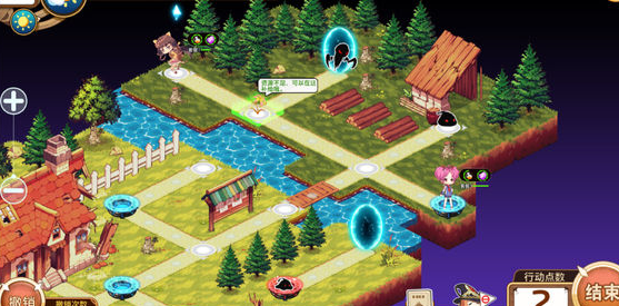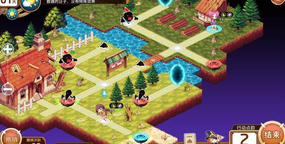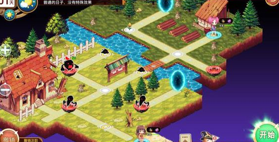 第二天三步一队如图往前走三步清掉召唤点上的两个怪结束回合如图,第三天一队继续往前走一步到抉择点选择发现新道路然后往回走两步结束回合