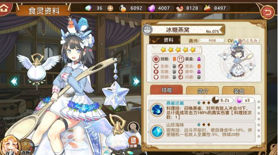 装盘作用3☆(这游戏推图对甜点十分不友好,燕窝加强甜点的技能次数,对推图帮助并不大。而对决你又能放出多少个波技能呢?)