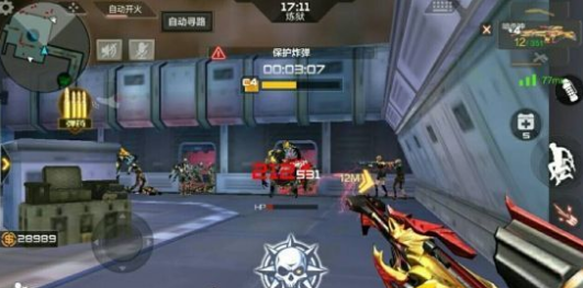 进入变异瘤体后面的通道之后,会到达一个巨大的房间内,我们要激活炸弹炸开铁门才可以继续前进,激活炸弹之后还要保护它不被丧尸毁坏,我们只需站在炸弹附近对着前方的三个出怪口持续攻击就可以了,这个过程相当于前面的刷分,所以打得越多越好。时间到了之后就可以炸开铁门,我们就可以补充弹药,准备迎战烈焰凤凰了。