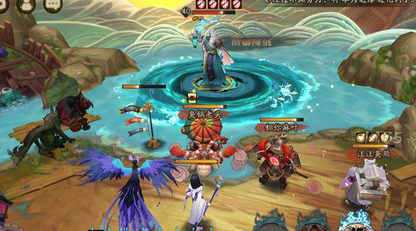 回合三:八百前期切换普攻,兵俑嘲讽+惠比寿插旗子,这里犬神输出要高,兵俑全场控制对面,基本对面放出全体冰冻的时候,小怪都解决了。