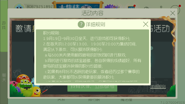 2、同时进行游戏的球宝越多,各自获得的成绩越好,所有参与的球宝额外获得的积分也越多;