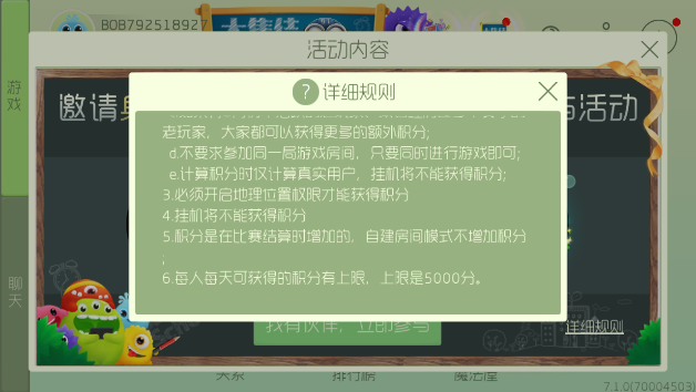 8、积分是在比赛结算时增加的,自建房间模式不能增加积分;