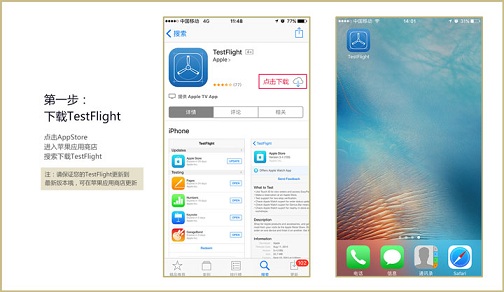 点击AppStore,进入苹果应用商店,搜索下载TestFlight