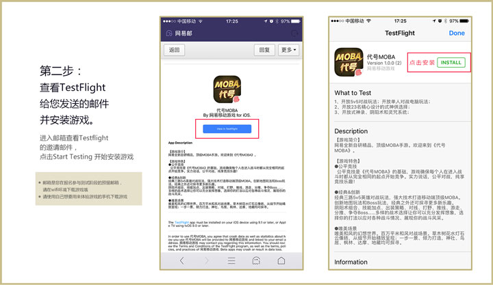第二步:查看TestFlight给您发送的邮件并安装游戏。