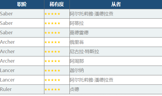 ※关于三星以及四星从者,可召唤的职阶也仅限于Saber,Archer,Lancer。