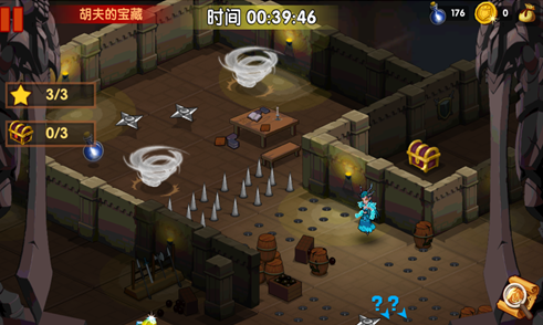 在此关卡中,玩家的生命为本次派遣的所有英雄的星级之和,如果不慎碰到了陷阱则会消耗2个星,所有星星消耗完毕后死亡,结算物品退出关卡。如果1分钟内没有拿完3个宝箱,则结算物品退出关卡。