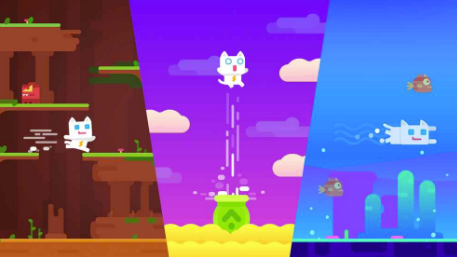 简化动作设计的同时,游戏还配合关卡的机关,设计了相应的特殊动作精灵,通过获得这些精灵,玩家操作的角色便可拥有除了跳跃之外的新能力。