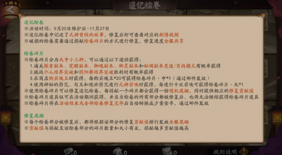 捐赠绘卷碎片即可修复追忆绘卷,每日修复绘卷可获得随机奖励。