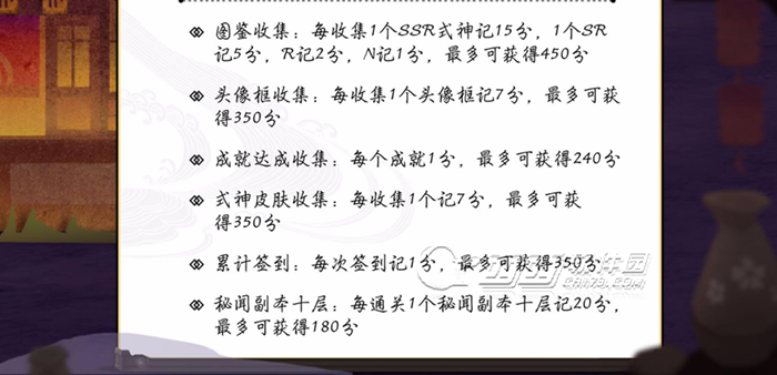 *活动开始后,将根据各位阴阳师大人式神、式神皮肤和头像框的收集数量、成就达成数量、签到次数、秘闻副本十层通关数量等给予评分。