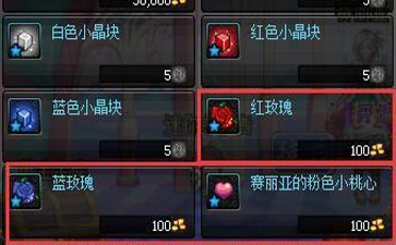 进货渠道也很简单,赛丽亚商店里红玫瑰、蓝玫瑰、小桃心都是100金币;