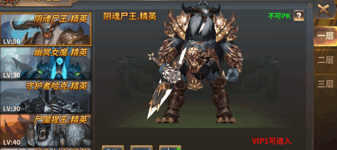 怪物等级30级-80级,共分为三层,层数越高,boss实力越强,会掉落更强力装备。