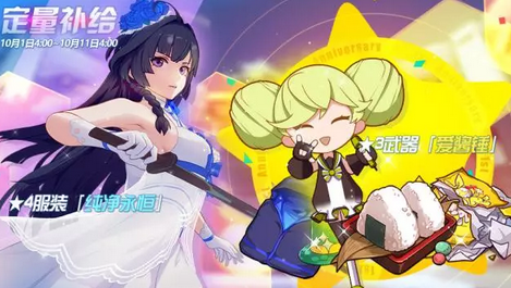 也就是说,10月1日~10月10日参与200次定量补给,必定可获得奖励列表中的所有物品,包括4星服装「纯净永恒」和3星大剑「爱酱锤」。
