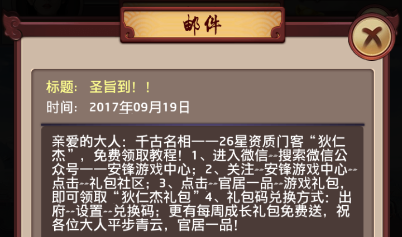 关注-安锋游戏中心-礼包社区-官居一品-游戏礼包-狄仁杰礼包,兑换即可