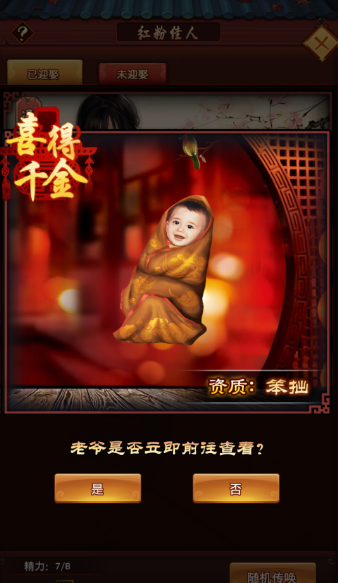 孩子的资质、子嗣的等级分为笨拙、平庸、聪慧、睿智和神童,依次对应10、20、30、40和50的等级。等级升满了之后可进行科举。科举之后可依照属性划分为童生、秀才、举人、进士、探花、榜眼和状元。等级越高越难培养。所以并不是属性越高就越好。只有达到相应等级才能长大成人,而且只有同等资质的双方才能联姻,所以说孩子资质越高就越难养,会花费的东西就越多。因人而异吧。并且,50级不一定就是状元。也有可能是榜眼。