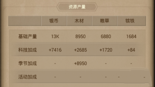 第五:随季节变化做内政的调整,例如建筑升等耗木,在宜木的季节内政量加倍,采 集加倍是最快收集木材的时机.科技发展耗银币,故在宜银币的季,开发资 源耗量大的科技 。