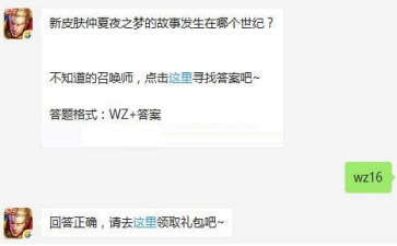 新皮肤仲夏夜之梦的故事发生在哪个世纪?王者荣耀9月24日每日一题答案。王者荣耀9月24日每日一题的问题是新皮肤仲夏夜之梦的故事发生在哪个世纪,还不知道答案的玩家可以跟小编看看哦。
