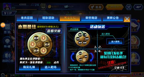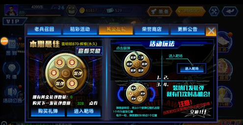 在黄金左轮靶场中,奖励是会进行更新的,玩家们如果有自己想要的武器在奖励中,东东建议将子弹先填充一半打,黄金左轮靶场的几率还是蛮高的!没必要全部都装满,那样也会出现空弹的几率。
