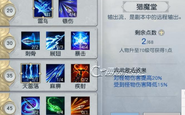 大家的流派加点其实也都大同小异,有争议的就6个技能,麻 痹,疾射,狙击,刺骨,展翅和箭岚。