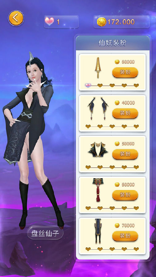 当玩家扫出仙妖后,紧接着便是要开始装扮养成。目前游戏中,玩家要通过升级衣服的五个部分,来完成对仙妖的最终收服,使她真正的归顺于你,入住你的后宫之中。