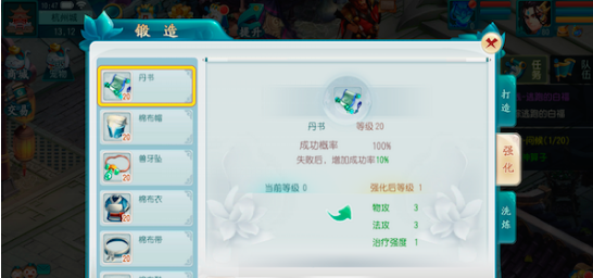 装备只有穿戴在身上时才能强化,装备强化需要消耗强化石和银币,强化石根据品质分为多种,不同强化等级消耗不同品质的强化石,更换装备后强化属性直接继承在新装备上。