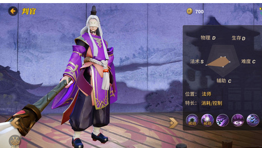 判官的技能伤害多是带一点延迟和限制条件的,虽然控制效果多但是不容易命中,而且判官既可以打中单又可以玩辅助,所以在阴阳术的选择上面也是大不相同的