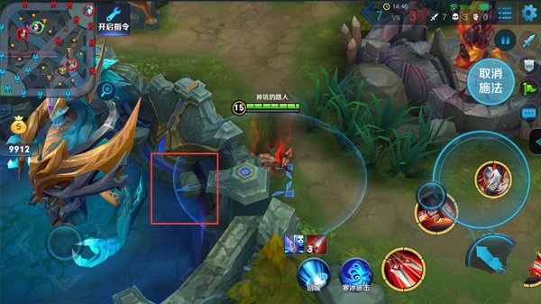 2、双方野区红蓝BUFF的背后的墙壁比较厚,大招不能直接越塔,但是两侧的墙壁比较薄,大招可位移过墙