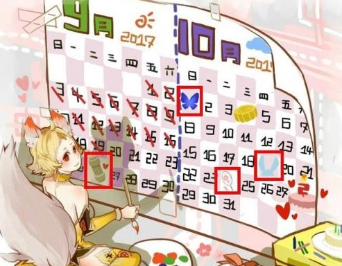 官方放出的这张妲己看日历的图片透露所有线索,可以看到26号上线苏烈(已印证),10月1日开售蝴蝶梦(游戏内已有公告),而10月19日的图标俨然就是梦奇的长耳朵。