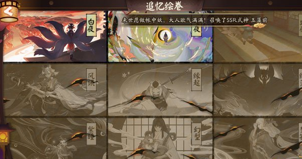 绘卷修复后,可查看对应的式神回忆视频,同时根据捐献贡献排行,发放全服奖励,每个服务器前20名更可获得对应式神奖励。