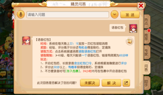 每晚22:10,梦幻精灵将向在线玩家发出语音红包