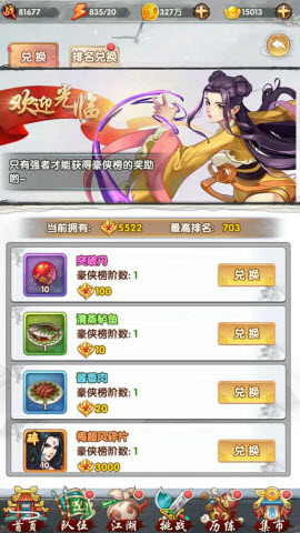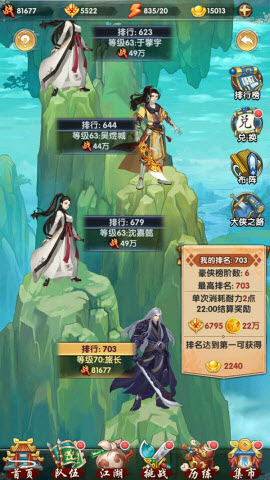 在《杨过与小龙女》世界里,玩家的战斗力高低不足说明强弱,了武林大会和华山论剑就可以很好的说明这点。玩家可以通过查看排行榜前几位强者的阵容配置,决定自己的发展策略,或者采取相应的针对措施,只要知己知彼,抓住对手的弱点,发挥自己的长处就可以智取对手,只有有勇有谋的修炼者,才会成为行走江湖中的天下最强王者。