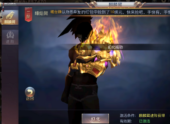 在麒麟臂系统中点击幻化,选取已激活的麒麟臂形象进行幻化操作,麒麟臂形象会变为相应形象显示。