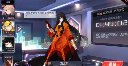 战斗技巧测试,指挥使需要选定一位神器使,在9项战斗技巧测试中任意通过其中4项。