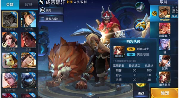 3、内含:英雄名称、定位、特长信息,同时还可以查看该玩家近期常用的职业,最近场次数以及总的场次数