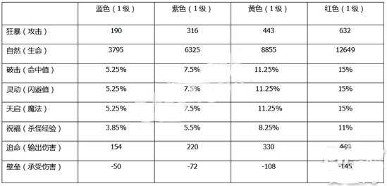 符文等级:蓝色、紫色、橙色、红色(最好)。