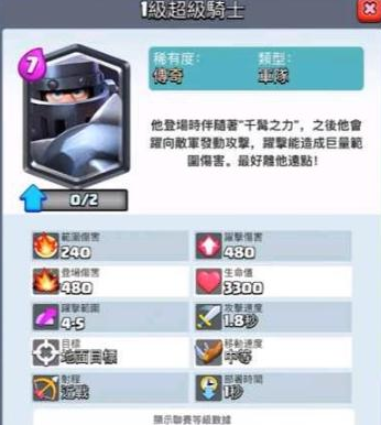 皇室战争新卡超级骑士数据分析及实用性测评 超级骑士是最新曝光四张新卡中唯一的一张传奇卡,因为也最受关注,那他未来会实用吗?下面来看看对已曝光的超级骑士数据分析和实用性测评。