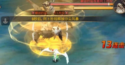 技能描述:当boss的血量从3X降到2X的时候,同样也是接近boss名字两个字开始会有该技能,boss会产生一股吸力将地图中所有玩家吸至身旁,然后四周出现沙墙,而当玩家集中在一块后沙墙才会随机出现一个口子,玩家可以从中出去。