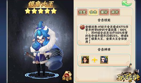 金银双角(合体技能):对敌方全员造成471%伤害并附带8秒的中毒效果(100%),同时组合成员治疗150%伤害的生命值并提升闪避25%,持续8秒。
