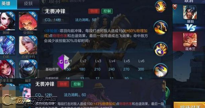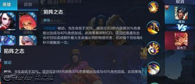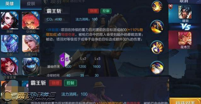 被动:项羽对等级低于自己的目标造成额外30%的伤害。
