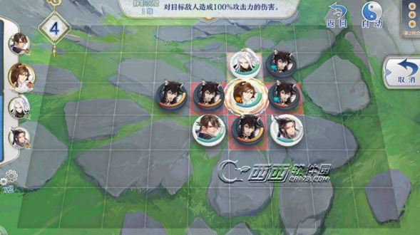 这个位置阳输出不一定会被打,但保险起见就还是扔了白扇的技能。然后坐等柔开大就行了。第二、三回合,阳克制女冠;刚克制黄(男)冠,这两个主力输出开大,柔打酱油,同理白扇保护好柔不被揍死即可。其他没什么难点了,走位必要时注意一下就行。