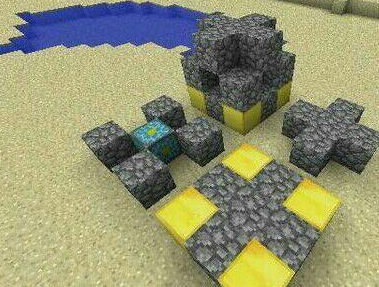 8、下界反应堆:材料“金块 圆石 反核块”最底层 圆石摆十字 角上放金块 第二层放在金块上 中间反核 最顶层圆石摆十字 点核块 核块变红刷怪