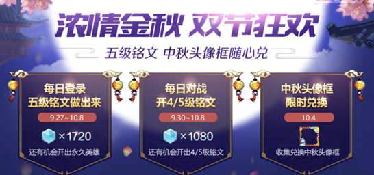 中秋节当天登录游戏,即可获得中秋道具-月饼,有机会开出815铭文碎片!