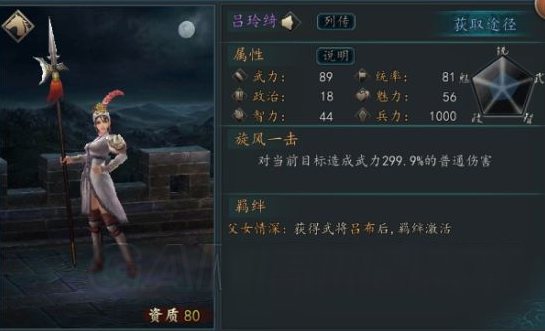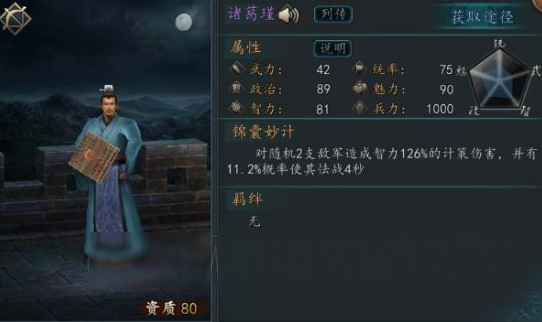 枪-姜维(统率90):不再获得怒气,自身统率提高23.8%,伤害提高17.4%,加成后统率为111。