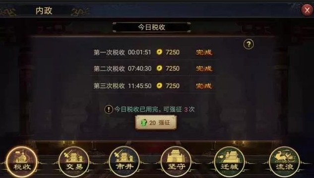 这时候就可以通过集市来进行资源交易。需要注意的是,正常势力下,最多可以在主城和分城中总共建造三个集市,将交易比例提升到10:6,但是流浪军最高只能维持在10:4。