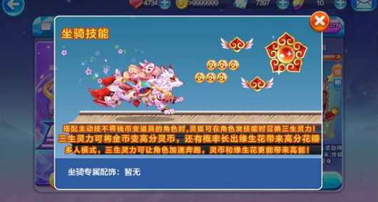 多人模式中,三尾灵狐三生灵力可以让角色加速,灵币和缘生花更能带来高能。