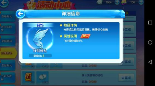 5、累计充值满680钻石,可获得黄金奖券*6+钻石*188+全新翅膀-纤羽缭乱*1;