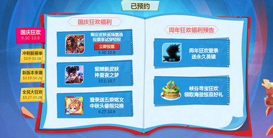 国庆狂欢:限定返场皮肤,貂蝉仲夏夜之梦,中秋节活动,周年狂欢送永久英雄